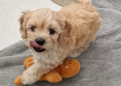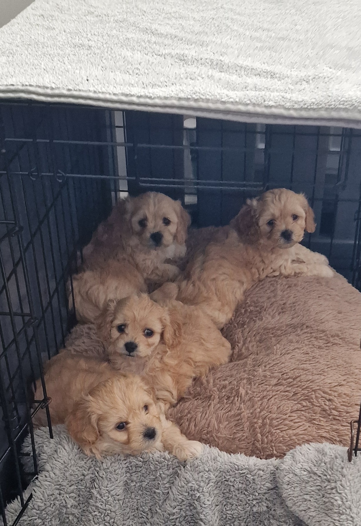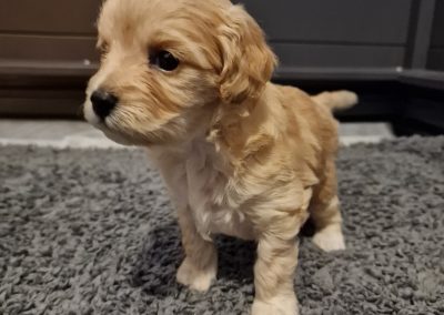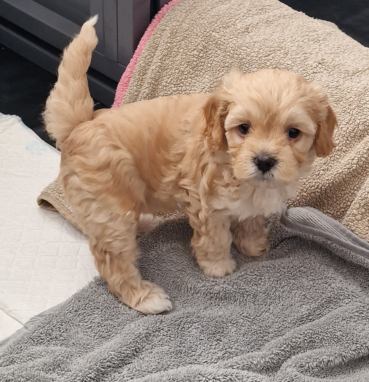 Clara is my Cavapoo and I have bred her with a Bichon Frise stud. All the health testing information is under my girls tab. Claras mum and dad are Paris and Teddy. I have all the CLEAR documentation here with me to show you at the 4 weeks viewing, see my 45 min video of this in my book. I do advise you do lots of google research on this breed and you will understand its a healthier mix if all the right health testing has been carried out. I will point out that Claras dad is DNA clear for 2 eye diseases/cataracts which is crucial. Cavapoochons are just adorable in nature and they grow to around the size of a Toy Poodle so similar to a Cavapoo.