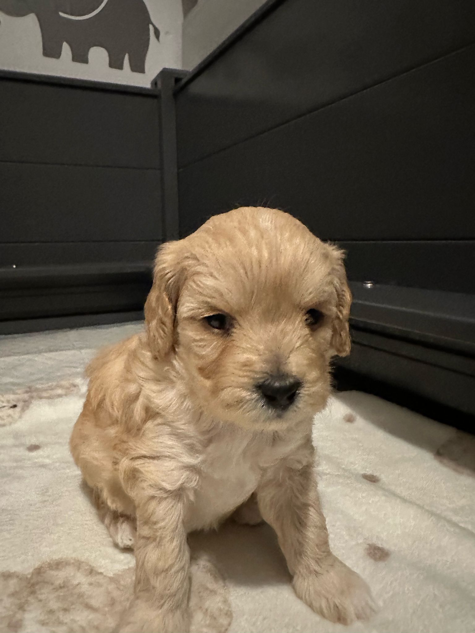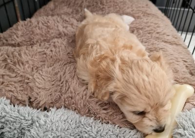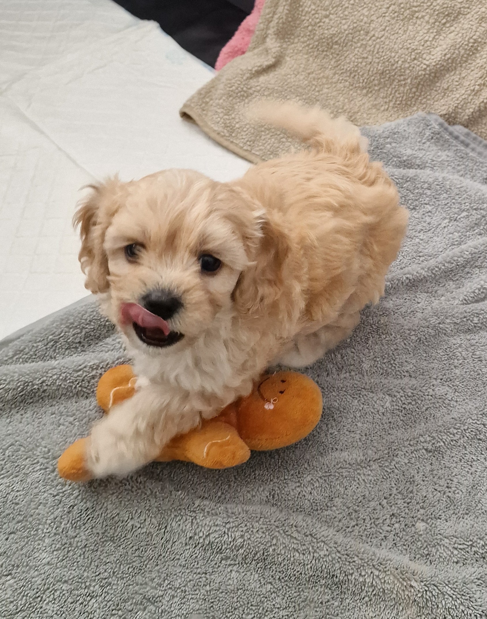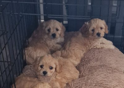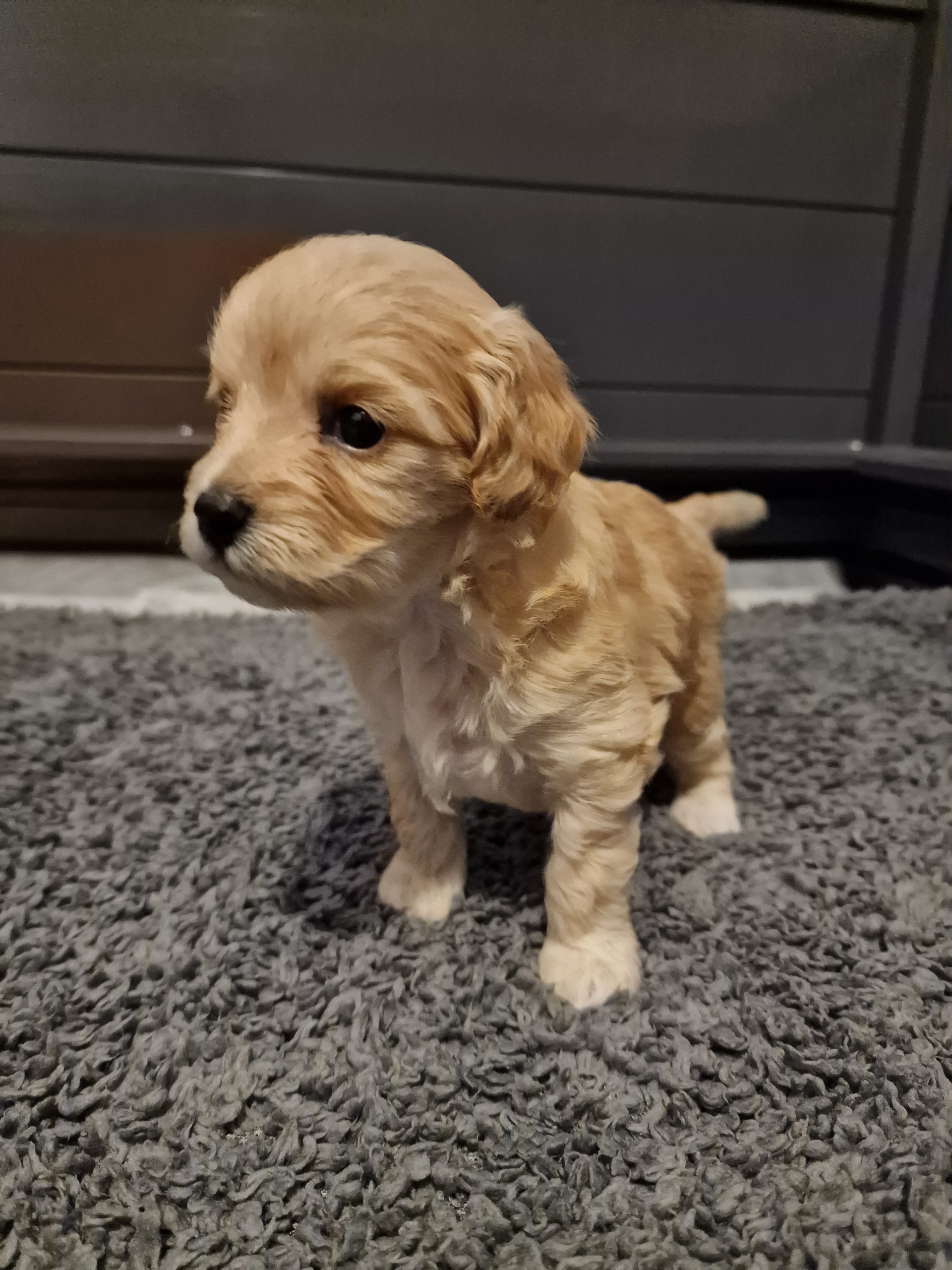 Clara is my Cavapoo and I have bred her with a Bichon Frise stud. All the health testing information is under my girls tab. Claras mum and dad are Paris and Teddy. I have all the CLEAR documentation here with me to show you at the 4 weeks viewing, see my 45 min video of this in my book. I do advise you do lots of google research on this breed and you will understand its a healthier mix if all the right health testing has been carried out. I will point out that Claras dad is DNA clear for 2 eye diseases/cataracts which is crucial. Cavapoochons are just adorable in nature and they grow to around the size of a Toy Poodle so similar to a Cavapoo.