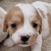 So from the day the puppies were born us as a family have been handling them really gently and slowly. So they have become used to that gentle touch and hearing our voices and seeing us as humans. We have taught them love and trust so far. So from 4 weeks the families come in and start to bond with their chosen puppy, starting a very important training and bonding journey that I have created here at Lotties Cavapoos. I do this because your puppy will become more confident, knowing the basic commands, be clicker trained, would of bonded with its family, be psychologically content, and can confidently communicate and read its families body language.Also be crated and lead trained plus much more. This goes on until the puppies leave us at 8/9 weeks so families are with us weekly for 4 weeks in total which is a very busy time.